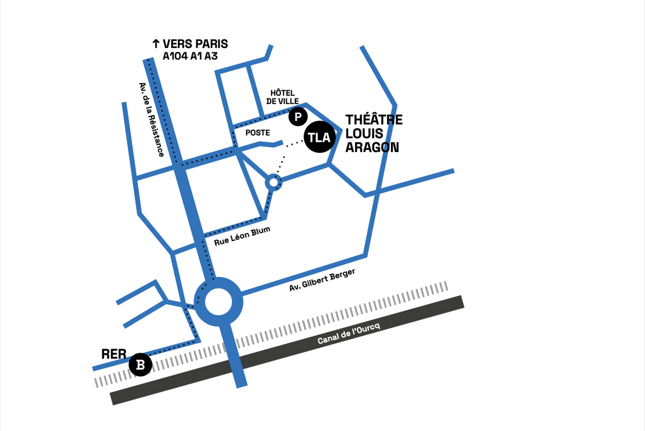 → Le TLA est accessible en vélo. Accès au parvis via le 31 avenue Nelson Mandela, 93290 Tremblay-en-France. Depuis Tremblay, 20 minutes depuis le Vieux- Pays, 12 minutes depuis le quartier du Vert-Galant. Depuis Paris, 55 min. par le parc de la Villette via la piste cyclable du Canal de l’Ourcq.