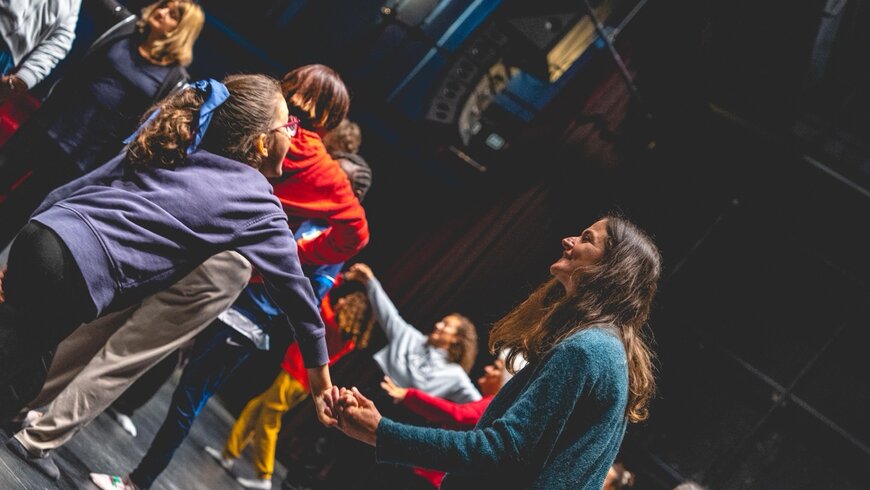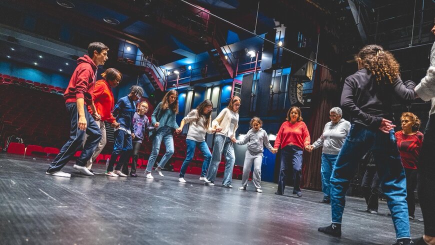 Nouvelle semaine d'ateliers avec le chorégraphe associé Massimo Fusco et le réalisateur Thibault Ras, pour Corps Oasis - Les Origines du bal : un court-métrage avec les habitantes du territoire et leurs enfants et petits-enfants.